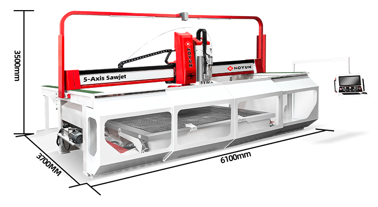 Оно выполняет функции "четыре в одном": резка пильным диском, гравировка фрезой, обработка подвесного бассейна, шлифовка кромок и резка струей воды. lt может обрабатывать различные материалы, такие как камень, гранит, мрамор, плитка, каменные плиты и стекло.